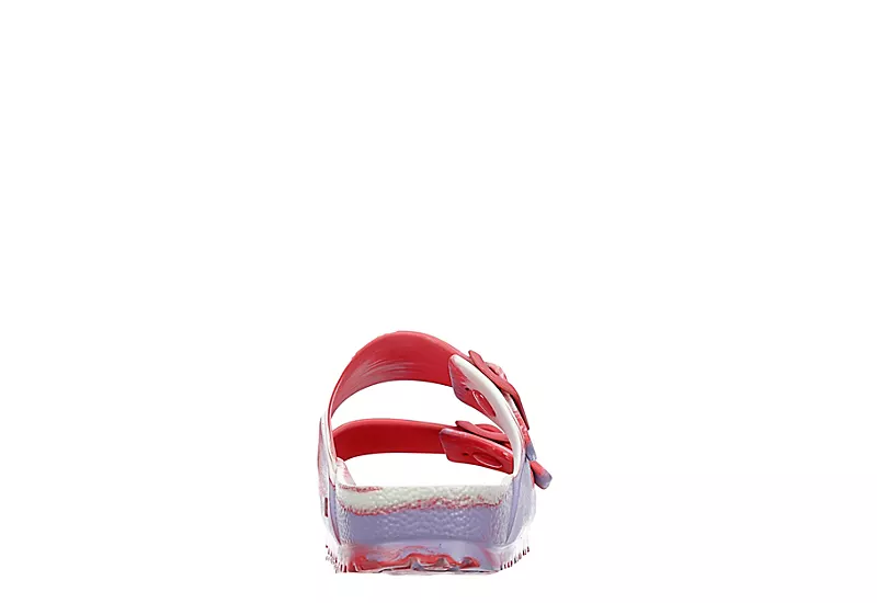An upgrade on the laid-back comfort pioneer, the Arizona Essentials women’s slide sandal by Birkenstock features an EVA footbed with pronounced arch support, a roomy toe box, and a deep heel cup. Two lightweight straps with pin buckles provide an adjustable fit.