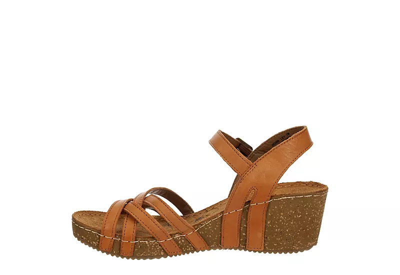 Settle into a stylish groove in the chic Bjorndal Lily women’s wedge sandal. With an interwoven, strappy faux leather upper, this ankle buckle strap sandal is a great pick for summer. The lightly cushioned footbed and cute wedge heel complement shorts and sundresses for an amazing look.Â