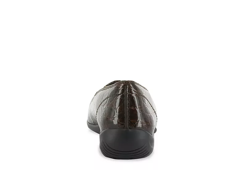 Need an everday shoe that’s comfortably stylish? Try the Easy Street Purpose women’s loafer. With a patent leather upper featuring a crocodile print and square toe, this slip-on loafer also has stretch gore for a great fit. The Comfort Wave technology and synthetic sole offer cushioning, support and stability as you go about your day.