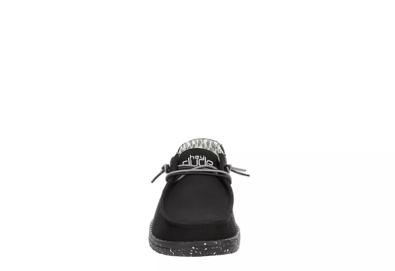Relax into your passion with the HEYDUDE Wendy Canvas women’s slip-on sneaker. With a lightweight, breathable cotton canvas upper featuring a contrasting heel detail, flex & fold technology, and elastic laces for a secure fit, this sneaker is machine washable for easy maintenance. The removable Memory Foam insole and leather lining offer ergonomic comfort and cushioning, while the ultralight outsole lets you explore unfettered.