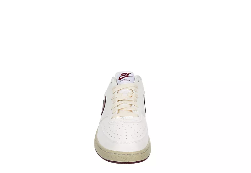 A combination of retro construction and modern performance make the Court Vision Low men’s sneaker from Nike a perfect shoe on or off the court. Call back to the ’80s with the leather & faux leather or canvas upper and deep traction outsole. The Nike Swoosh keeps the classic vibe going.Â